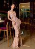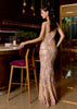 Dress in Pink Silk Soft Net, adorned with intricate applique and hand embroidery.