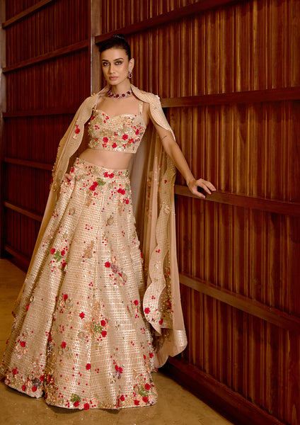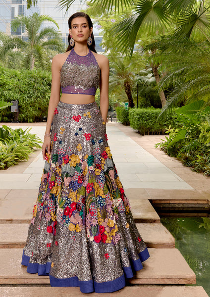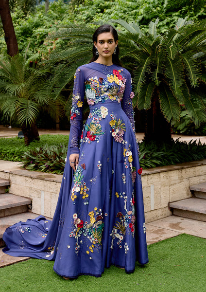 IKTARA is romance incarnate, where fabric becomes poetry and color, the language of desire. Midnight hues dissolve into tender dawns, every shade a whispered promise of love. Delicately embroidered botanicals and appliqué blooms capture fleeting moments of intimacy, translating them into timeless artistry. A serenade to oneness, IKTARA blooms as a garden of memory and devotion.