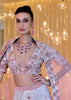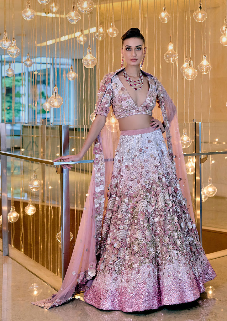 Darshna Lehenga set in Pink Silk Soft Net, featuring intricate applique and hand embroidery.